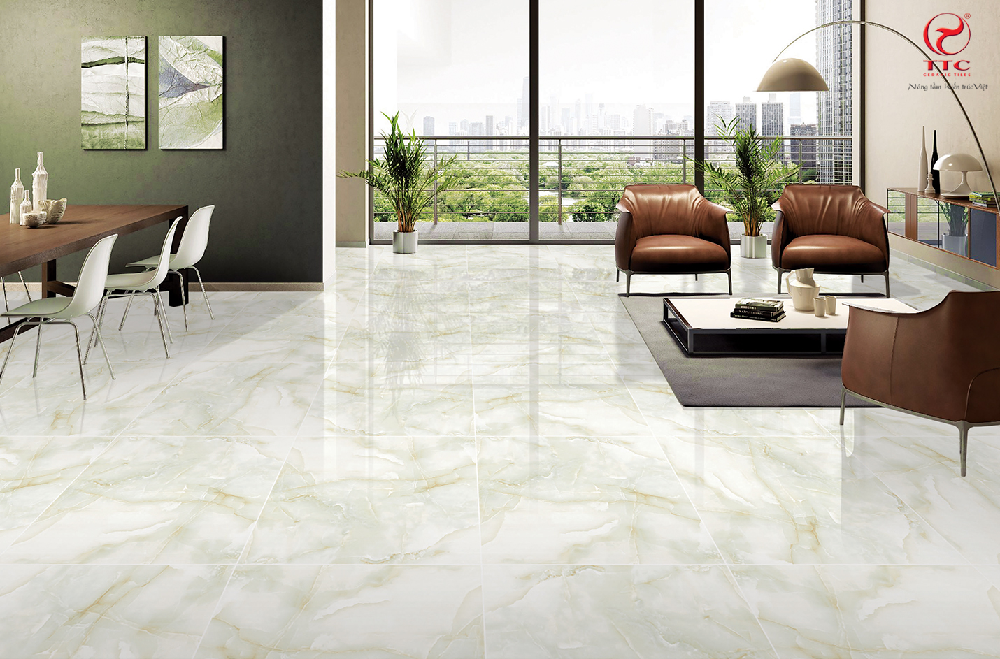 Kích thước gạch: Nên chọn gạch lát lớn (60x60 cm hoặc lớn hơn) để tạo cảm giác rộng rãi.