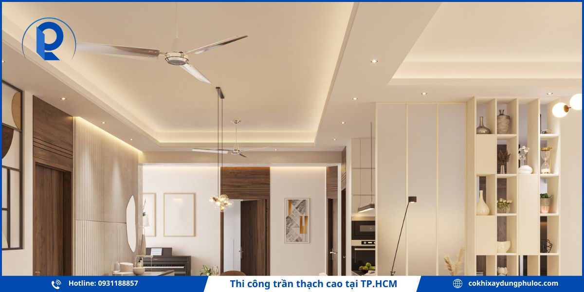 Các dịch vụ thi công trần thạch cao tại TP.HCM của Phú Lộc cung cấp dịch vụ chất lượng cao, không chỉ mang lại tính thẩm mỹ mà còn đảm bảo độ bền vững: